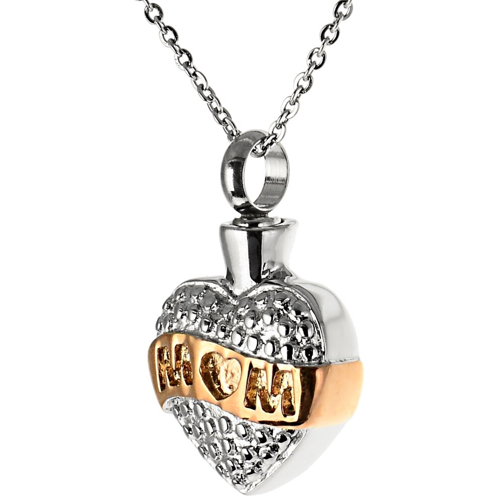 Asche Anhänger Andenken Herz “Mom” Silber Rosegold abgesetzt aus Edelstahl